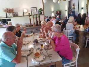 In de ochtend troffen we elkaar bij het Drieske in Hulsel. He was meteen gezellig en er werd volop gekletst onder het genot van een lekker bakkie koffie/ thee. Maar we waren er ook om te bridgen. Dus op naar de kleine zaal waar alles voor het bridgespel al klaar stond. Verdeeld over 6 tafels speelden we onze spellen, 2 rondes van elk 4 spellen, en tussendoor nog een lekker bakske. Hierna op de fiets, via een toeristische route, naar Fabor, de ijsboerderij in Reusel. Hier stond een heerlijke lunch voor ons klaar. Waarna er weer gebridged kon worden. Na afloop mocht een lekker ijsje natuurlijk niet ontbreken, wat we op het terras verorberden. Hierna fietsten we naar Bojo’s in Lage Mierde. daar werden de laatste 8 bridgespellen gespeeld.
