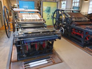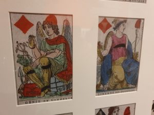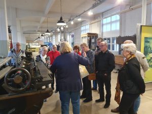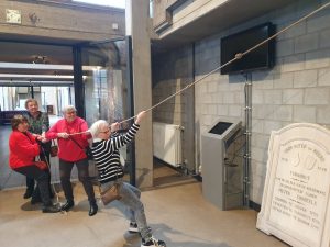 Op 27 Januari bezochten we met een select groepje het Speelkaartenmuseum in Turnhout. Nadat we hadden kennis gemaakt met onze leuke gids Nicole, kregen we van haar een rondleiding en ze vertelde hele interessante verhalen bij alles wat er te zien was. Zo bleek dat het kaartenspel al aan het einde van de 14e eeuw zijn intrede deed in Europa. Het had onmiddellijk succes maar liep uit de hand. Het gokken met kaarten mondde uit in ruzies, vechtpartijen, godslastering, zelfs moord en doodslag. De kerk beschouwde het kaartspel daarom als uitvinding van de duivel. Kaarten kregen een slechte reputatie en eindigden op de brandstapel. Toch werden in de eeuwen daarna kaartspellen met allerlei afbeeldingen bedacht. Dat het niet overal was toegestaan bleek wel uit het uitgeholde misboek, waarin pastoors en andere religieuzen hun kaartspel konden verbergen en meenamen naar verboden plaatsen. Later veranderden de afbeeldingen en de vormen van de kaarten tot wat we heden ten dagen kennen. Er is wel een verschil in de Franse, Engelse en Nederlandse versie. Ook zagen we diverse drukmachines. Machines die met de hand aangedreven moesten worden door te draaien aan een rad. Op het moment dat wij er waren werd dit ook uitgevoerd. en machines die werkten op stroom. Machines waarbij met de hand de inkt verdeeld moest worden (tamponneren) en machines waarbij de inkt ingegoten konden worden. Ook werd er gebruik gemaakt van allerlei sjablonen. Al met al zeer interessant. Ook was er een hel grote stoommachine, die voor ons werd aangezet. Deze kon vroeger meerdere drukmachines tegelijkertijd aansturen. Om aan te tonen hoe krachtig deze machines waren zagen we 4 vrouwen van ons groepje al hun krachten bundelen om 1 PK omhoog te trekken. ( de mannen konden het met gemak met z’n drieën).
